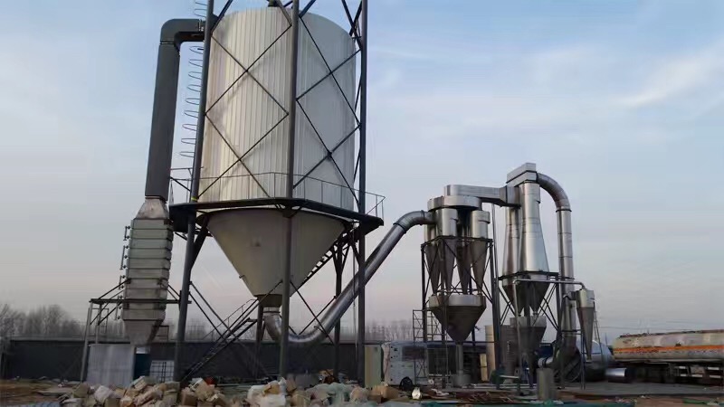 該生產(chǎn)線由供料系統(tǒng)、介質(zhì)循環(huán)系統(tǒng)、空氣加熱凈化系統(tǒng)、干燥塔系統(tǒng)、收料系統(tǒng)、控制系統(tǒng)等多個系統(tǒng)整合而成。主塔系統(tǒng)集中了目前噴霧干燥工程的所有尖端技術,噴干機組的收料系統(tǒng)由一級旋風分離器+布袋除塵器組合形成。一級旋風采用高氣量高效率旋風進行收集,其收粉率能達到96%左右分,而布袋除塵器是針對蛋白粉類除塵專門設計的優(yōu)化設備,能使物料與風進行完全分離并沉降,布袋為拒水防油防靜電布袋,過濾目數(shù)可達500目以上。